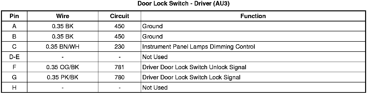 Door Lock Switch - Driver (AU3)