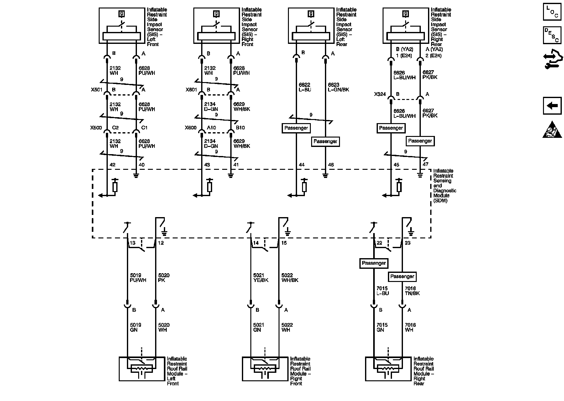 Module Power, Ground, Serial Data, Vehicle Rollover Sensor (ASF) and Disable Switch