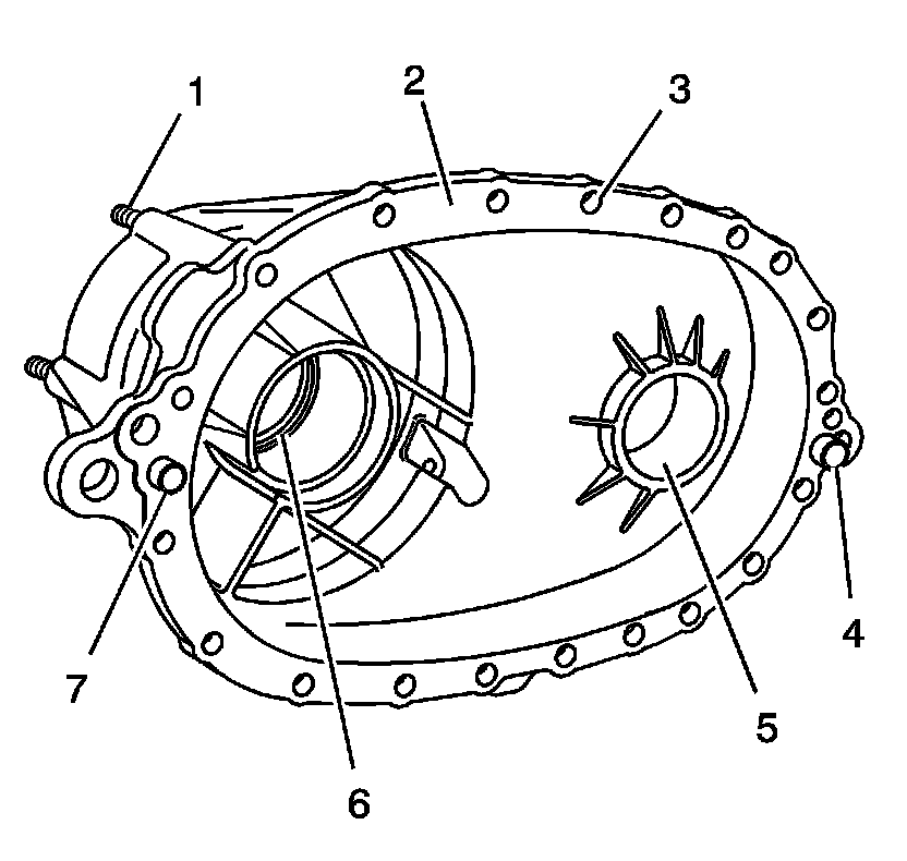 5. Inspect the front output shaft front bearing bore (5) for the following conditions: