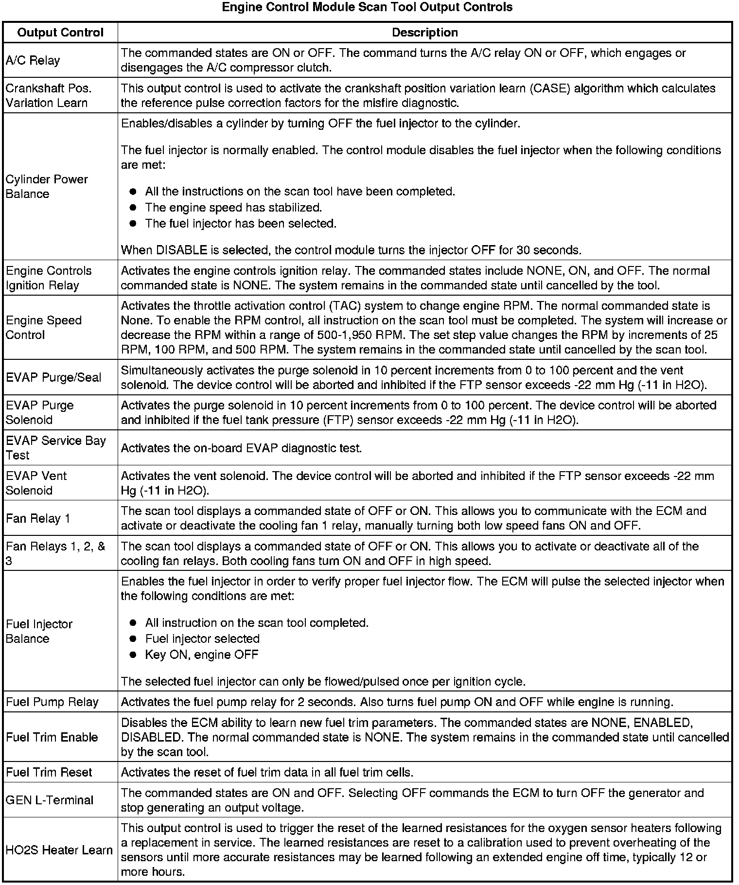 Engine Control Module Scan Tool Information