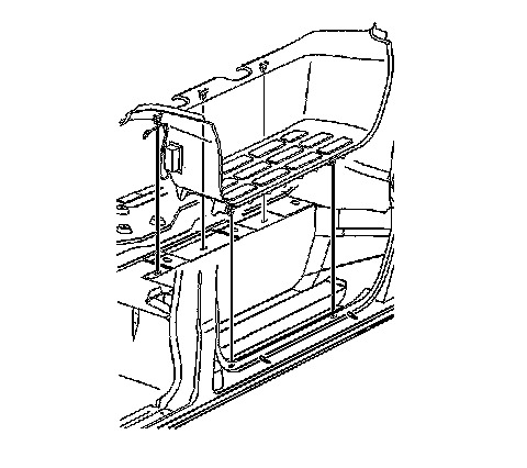2. Remove the front door lower pillar garnish molding. Refer to Lower Pillar Garnish Molding Replacement Lower Pillar Garnish Molding Replacement.