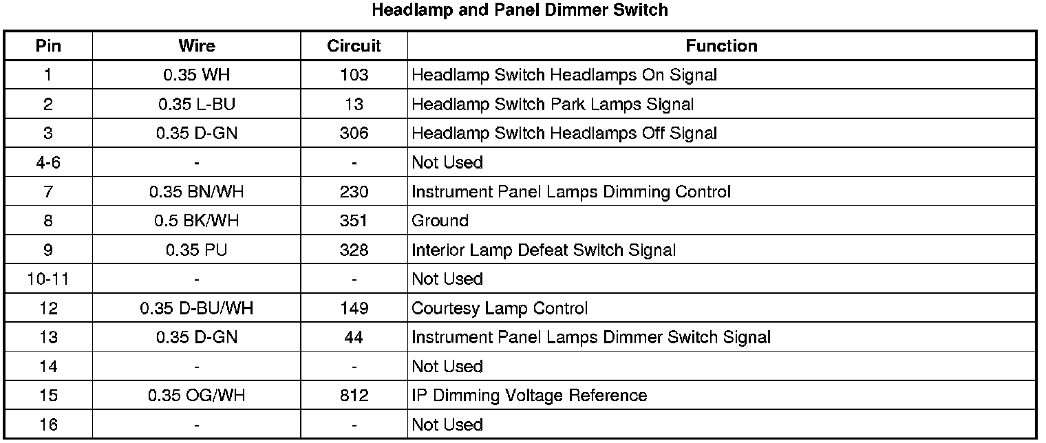 Headlamp and Panel Dimmer Switch