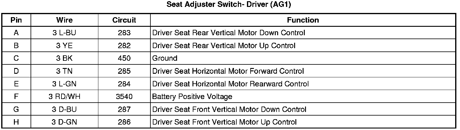 Seat Adjuster Switch- Driver (AG1)