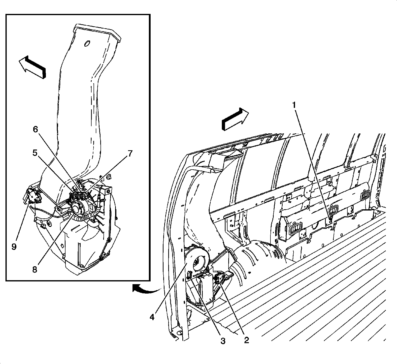 1 - Inflatable Restraint Side Impact Sensor (SIS) - Left Rear (Passenger with ASF without E26)