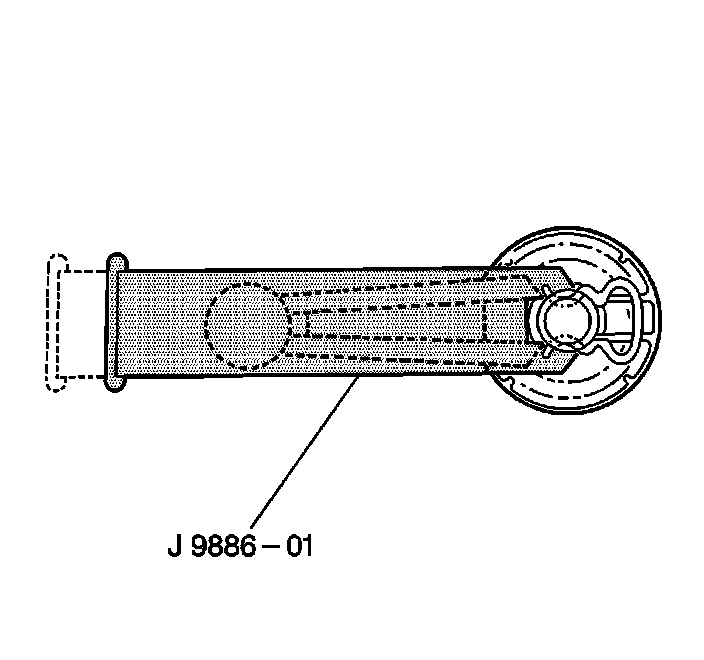 3. Remove the spring clip by inserting J 9886-01 between the window regulator handle and the door window regulator handle bearing plate. Press down to remove the spring clip.