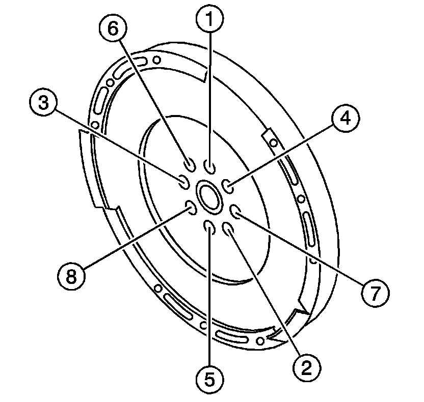 5. Tighten the flywheel bolts in the sequence shown.