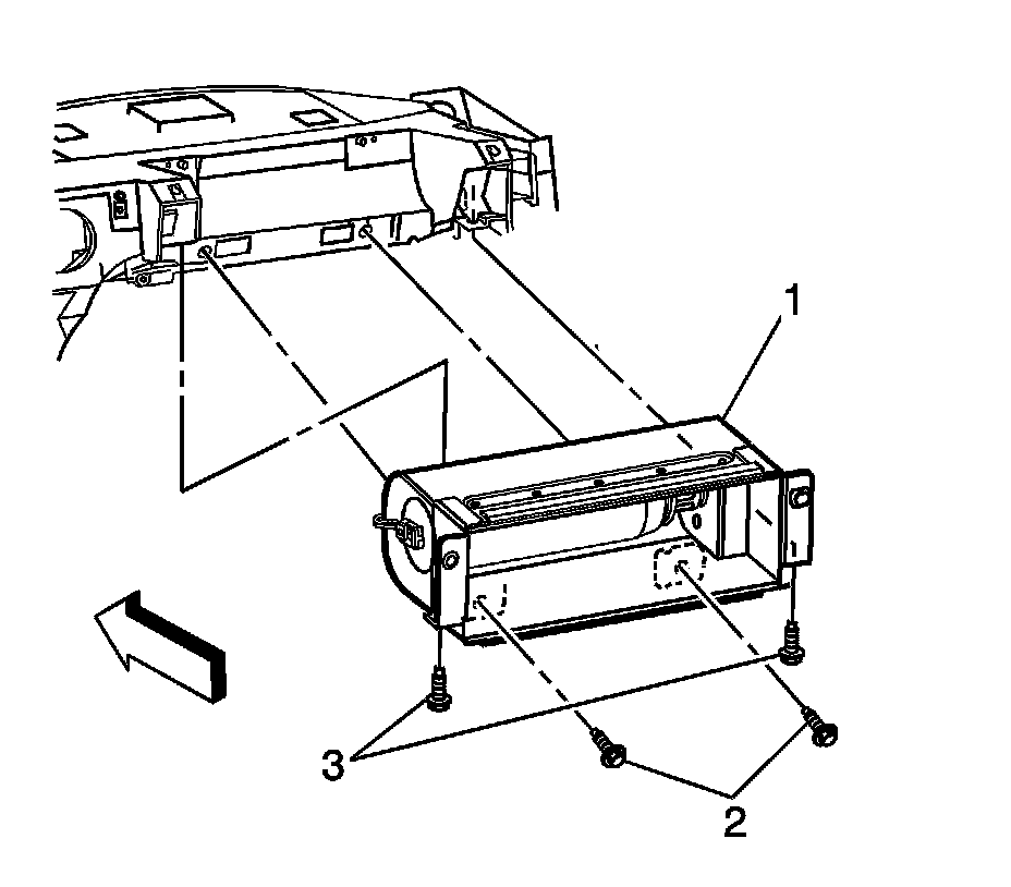3. Install the lower bolts (3) to the inflatable restraint instrument panel inflatable restraint module and tighten to 10 Nm (89 lb in).