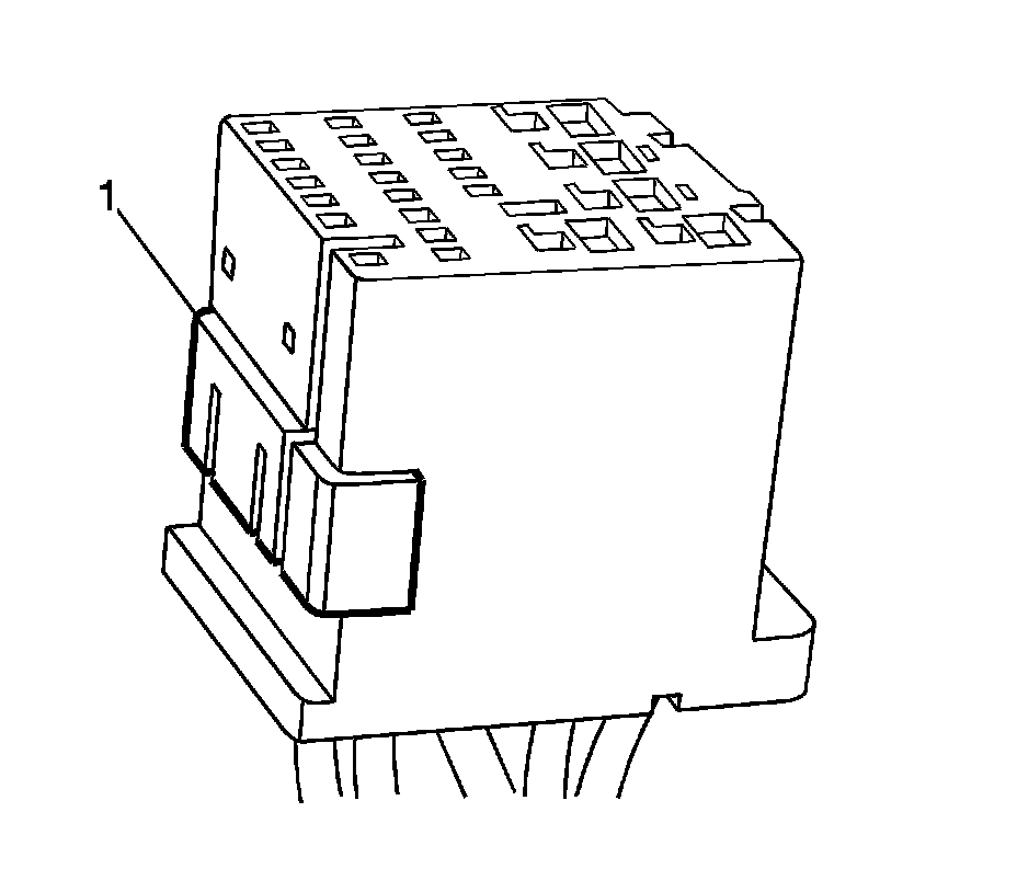 * Position the connector as shown (above) and locate the terminal release entry canal (1) of the suspect terminal.