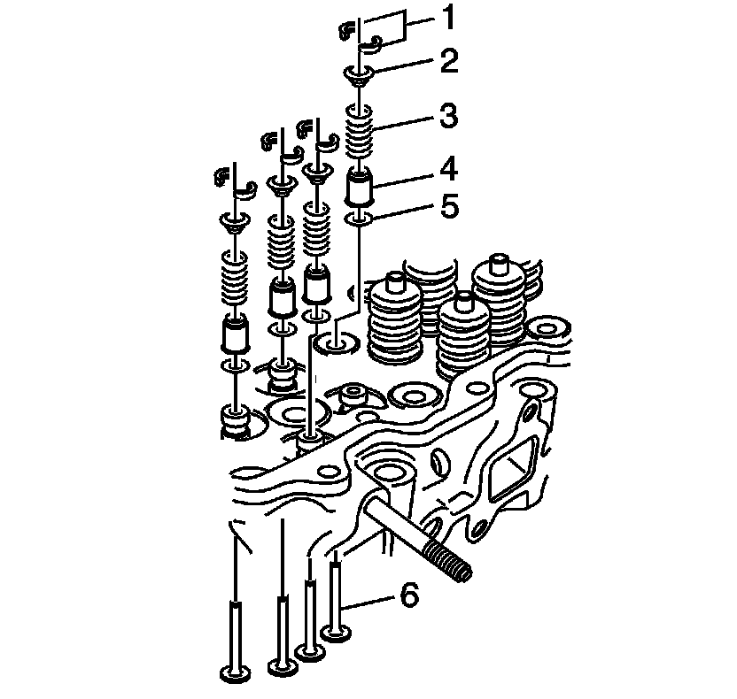 8. Remove the valve spring lower seat (5).