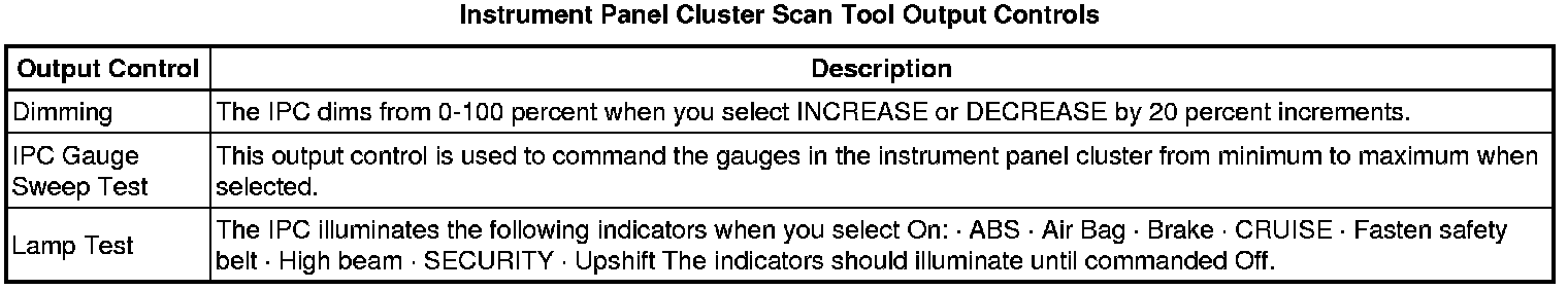 Instrument Cluster Scan Tool Information