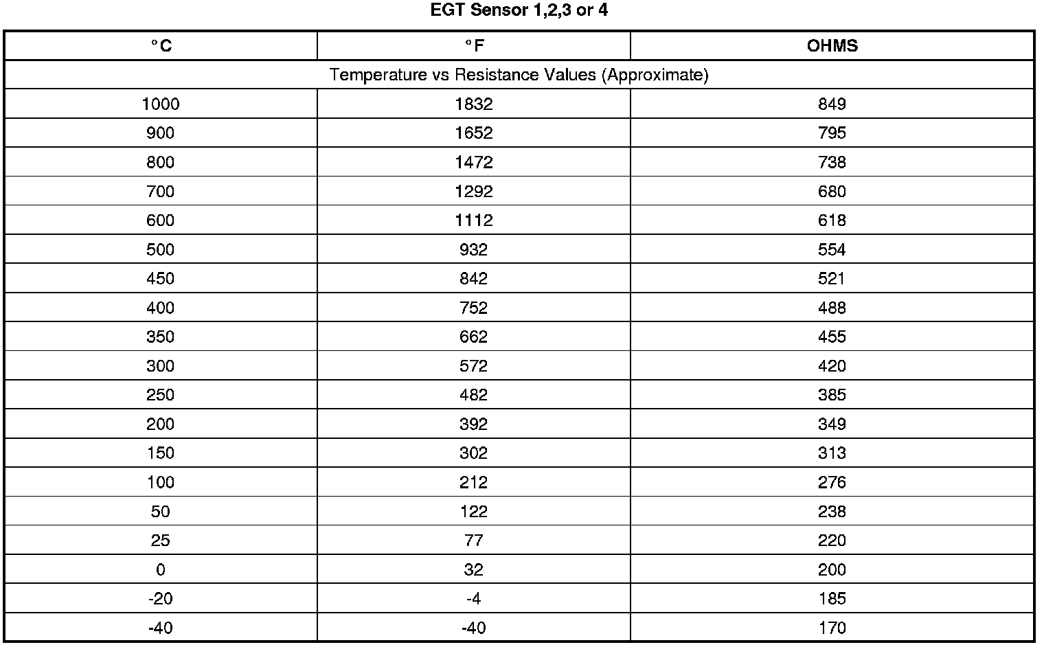 Temperature Versus Resistance (EGT Sensors)