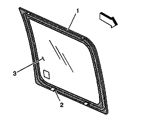 Do not apply the (black #3) primer to the existing bead (1) of the urethane adhesive on the pinchweld flange. Apply the primer only to nicks, scratches or the primed surfaces.
