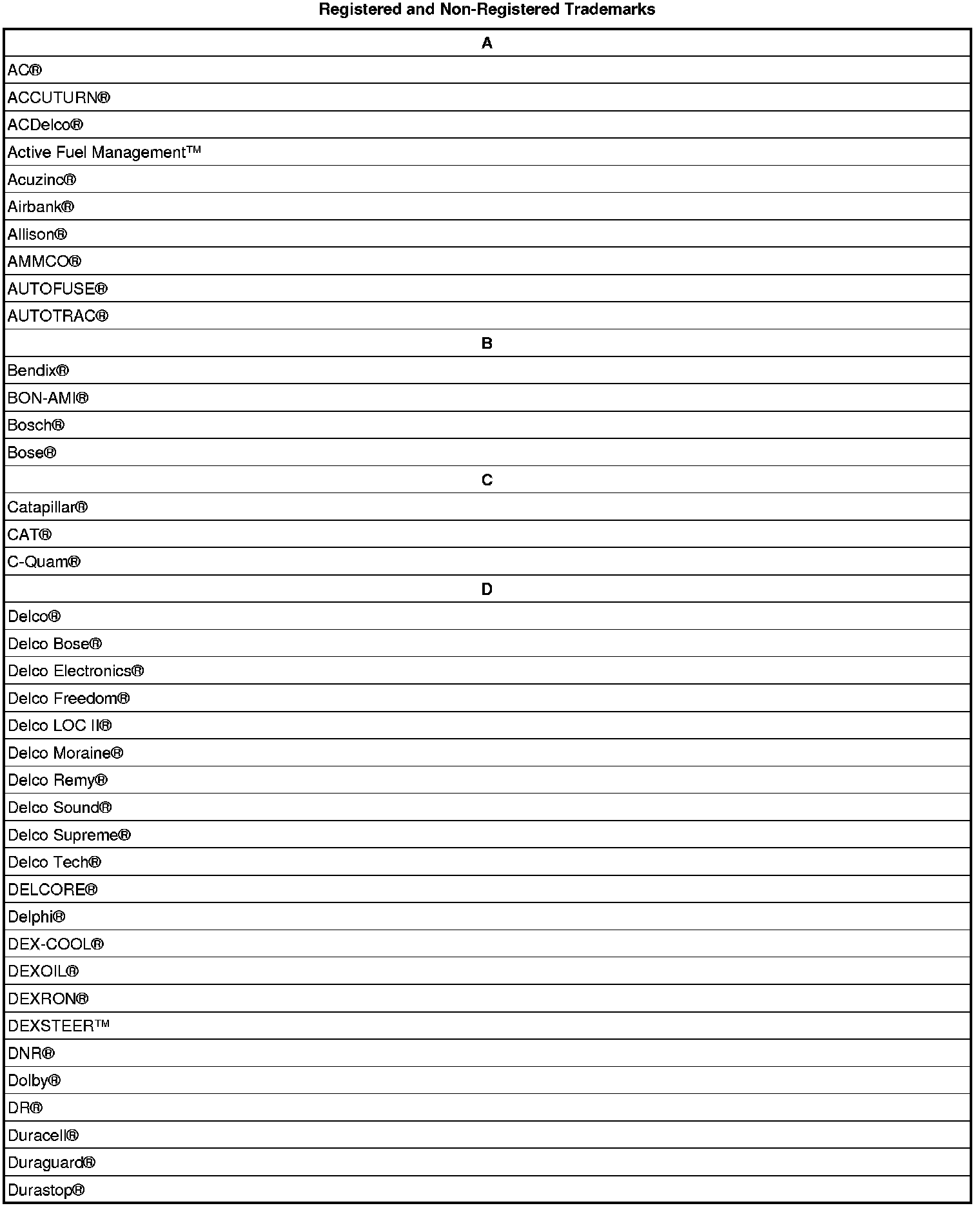 Listed below are Registered Trademarks ((R)) or Non-Registered Trademarks ((TM)) which may appear in this service manual.