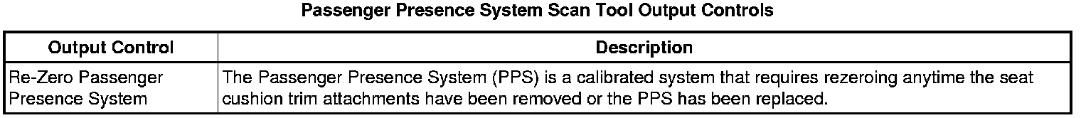 Inflatable Restraint Passenger Presence System Scan Tool Information