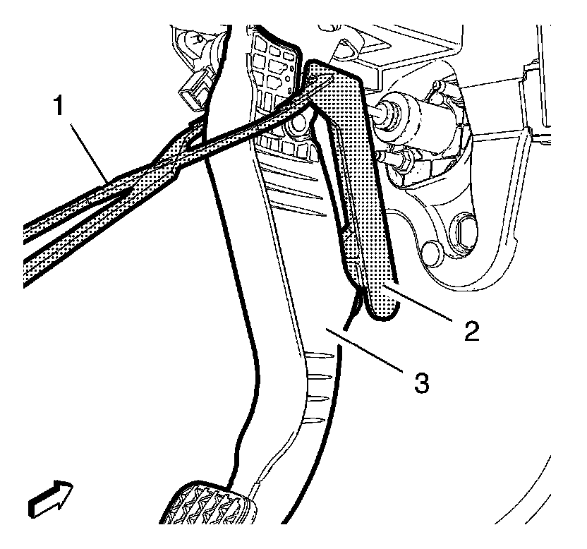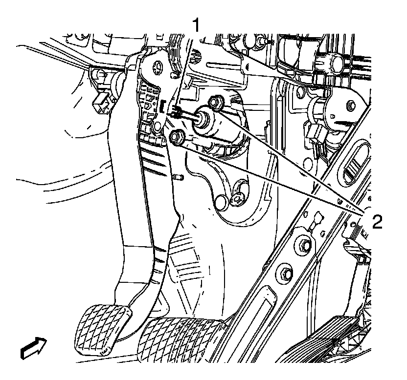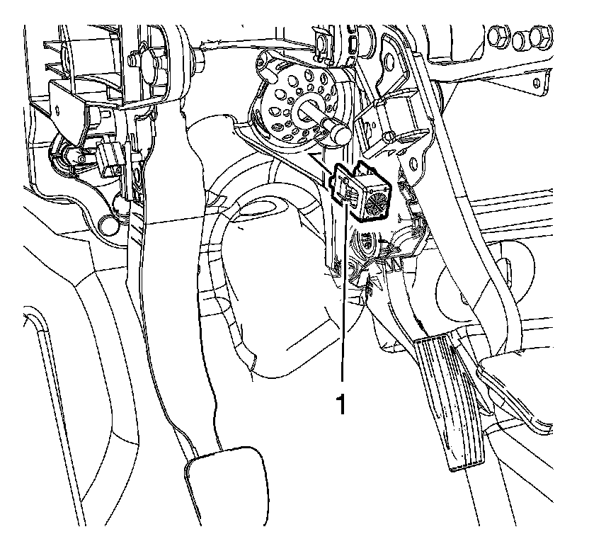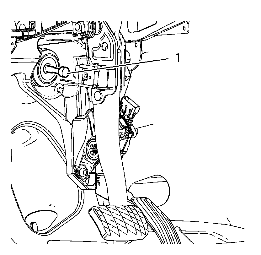 16. Replace click fit connector (1) between booster pushrod and brake pedal with new part.