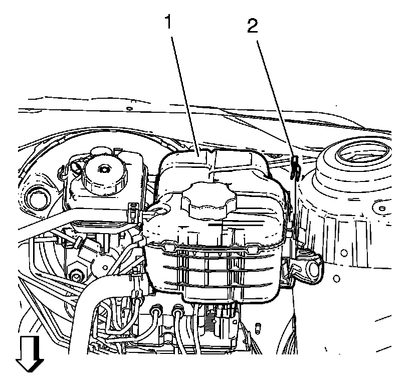 5. Remove the radiator surge tank (1). Position the radiator surge tank (1) aside.