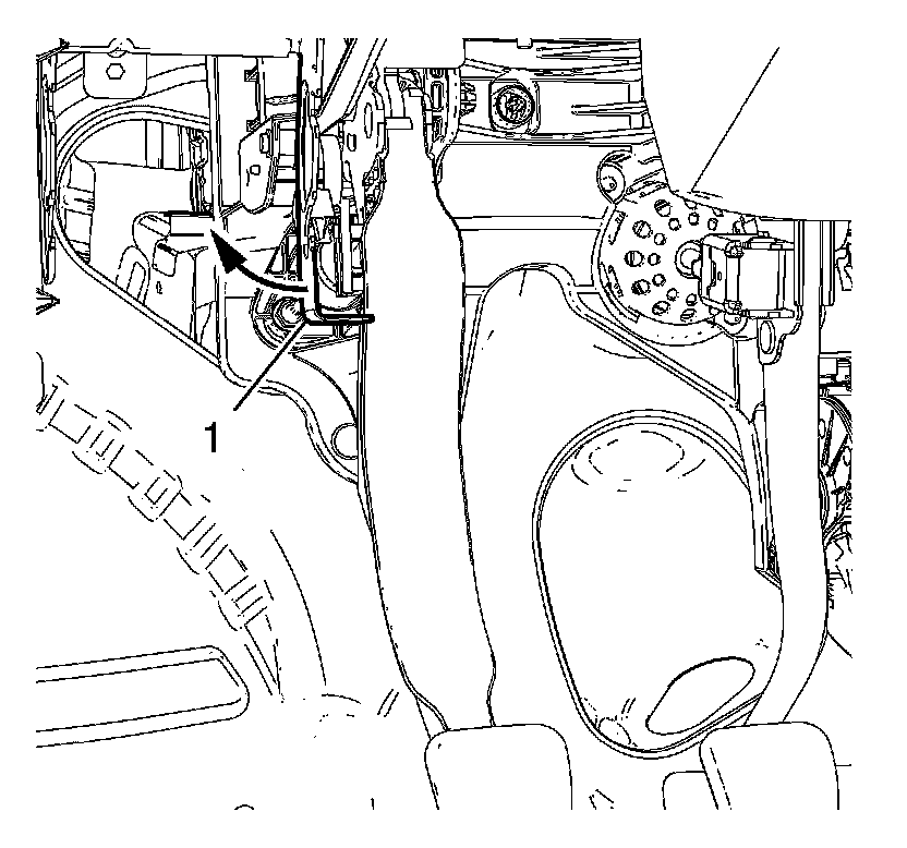 22. Carefully reposition the fuse box bracket (1) to the side to allow space for pedal assembly removal.