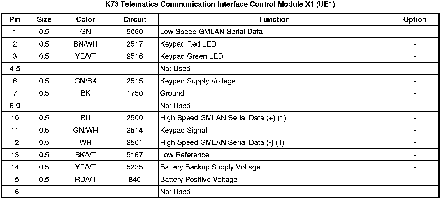 K73 Telematics Communication Interface Control Module X1 (UE1)