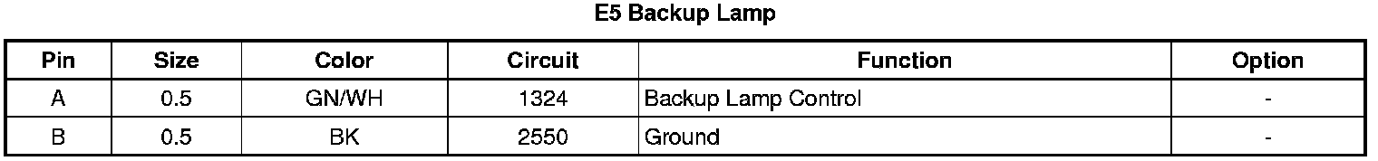 E5 Backup Lamp