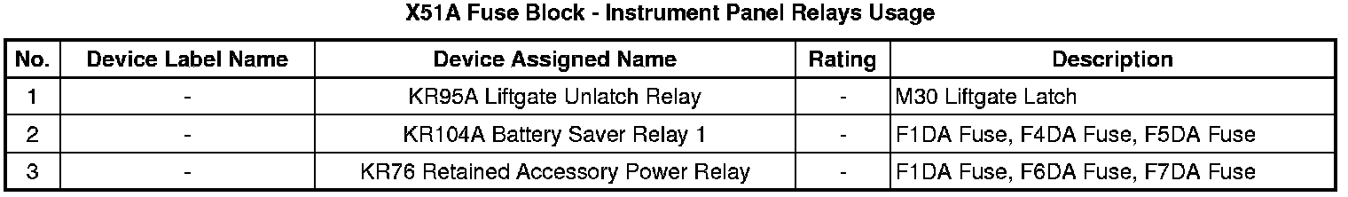 X51A Fuse Block - Instrument Panel Top View Relays