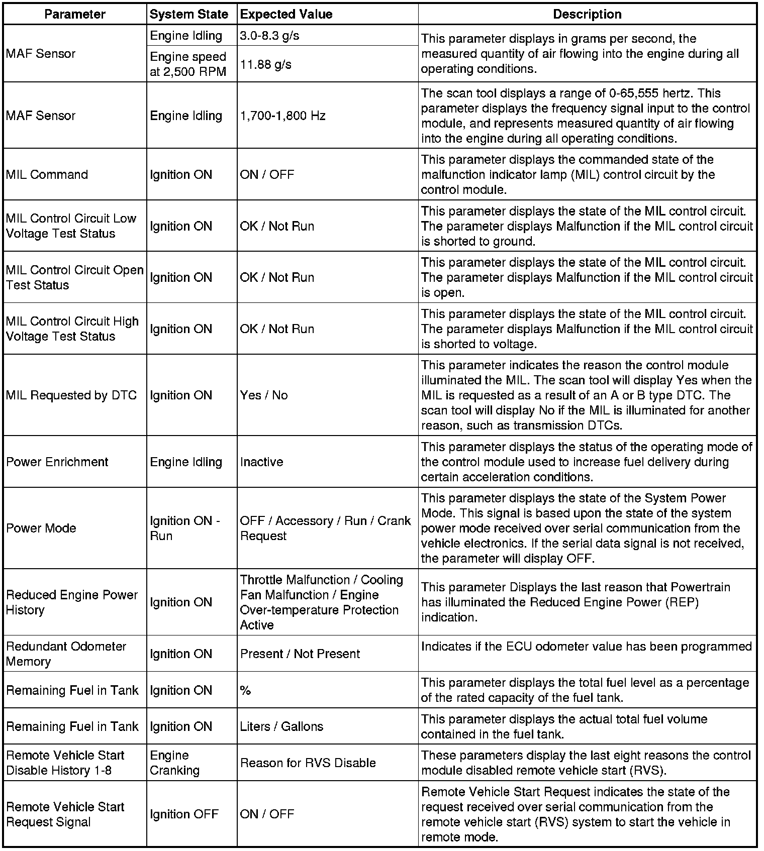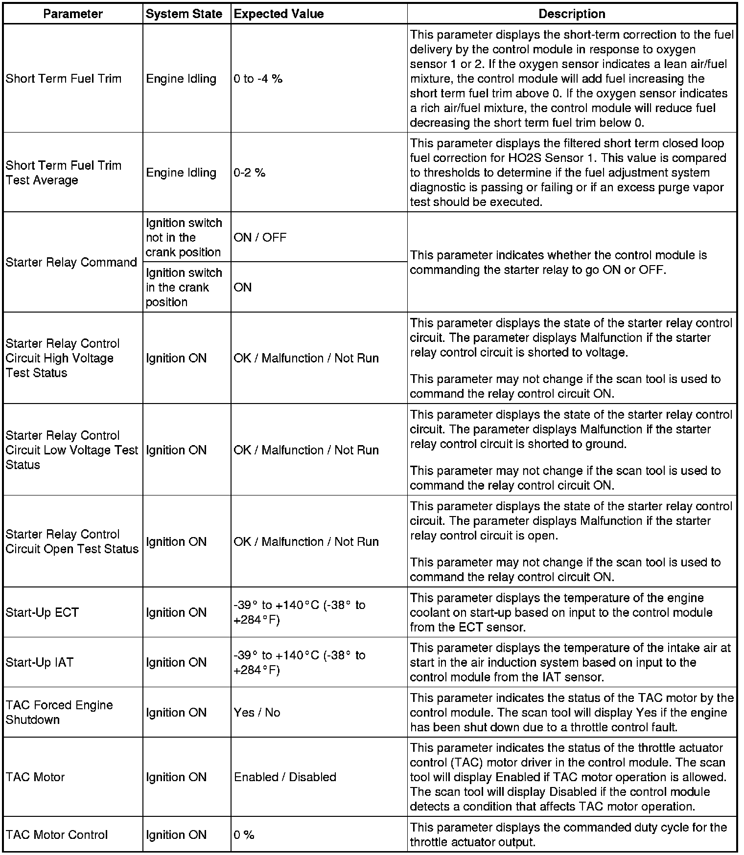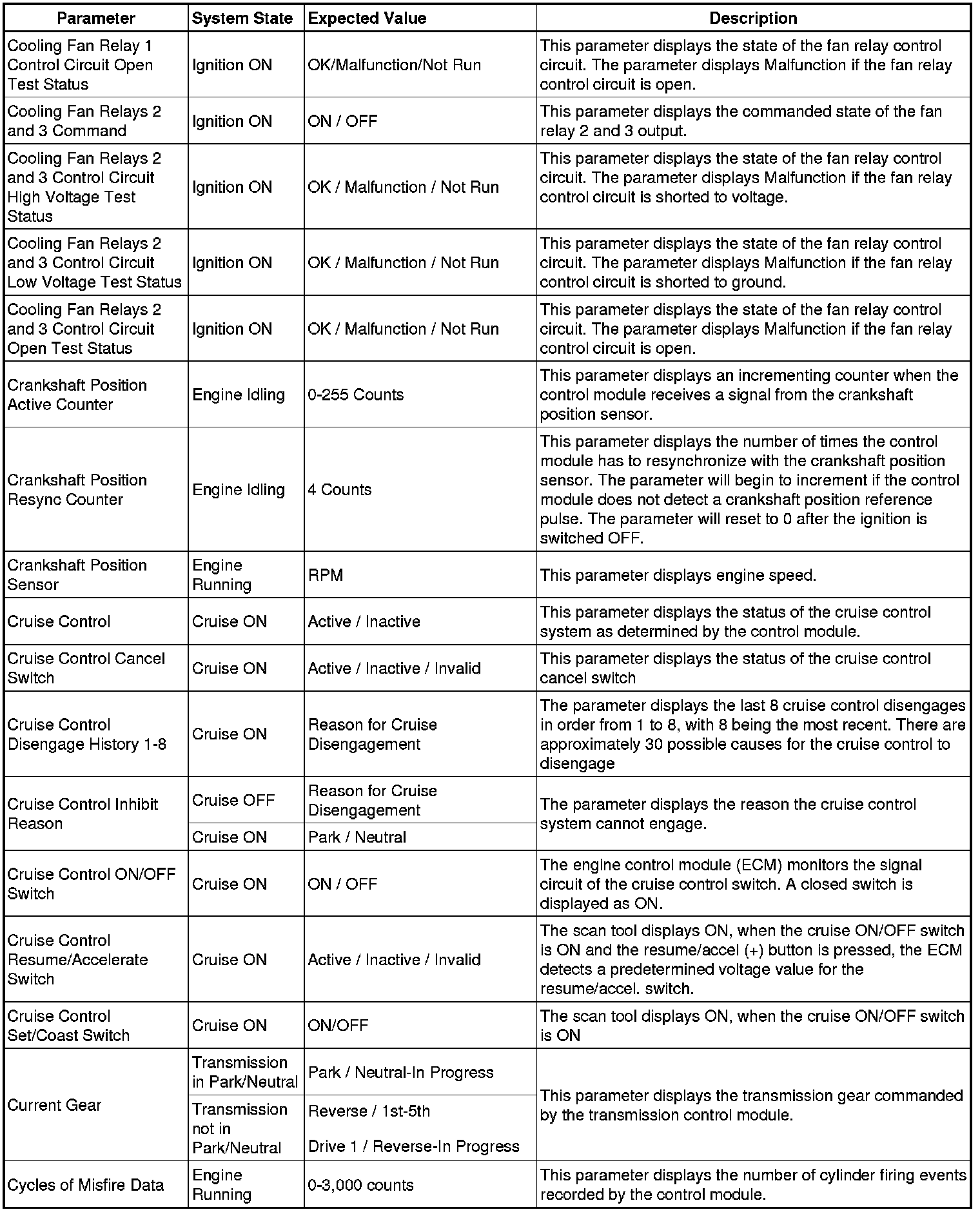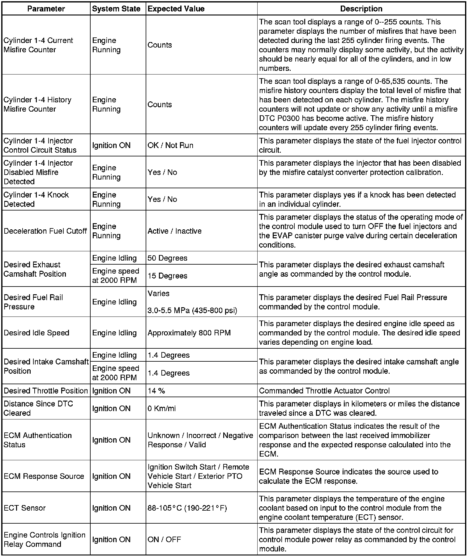 The Engine Control Module Scan Tool Data List contains all engine-related parameters that are available on the scan tool. The list is arranged in alphabetical order. A given parameter may appear in any one of the data lists, and in some cases may appear more than once, or in more than one data list in order to group certain related parameters together.