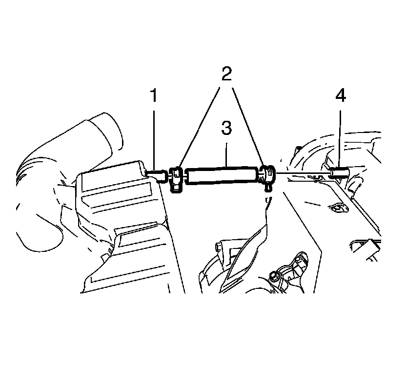 3. Remove the positive crankcase ventilation hose (3) from the camshaft cover (4) and the air cleaner outlet duct - rear (1).