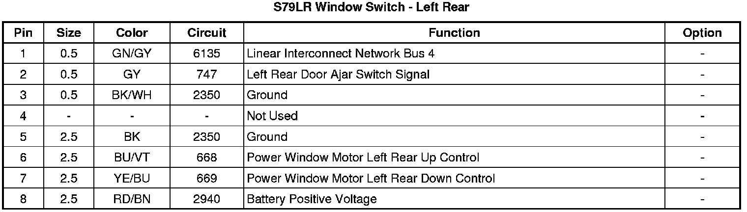 S79LR Window Switch - Left Rear