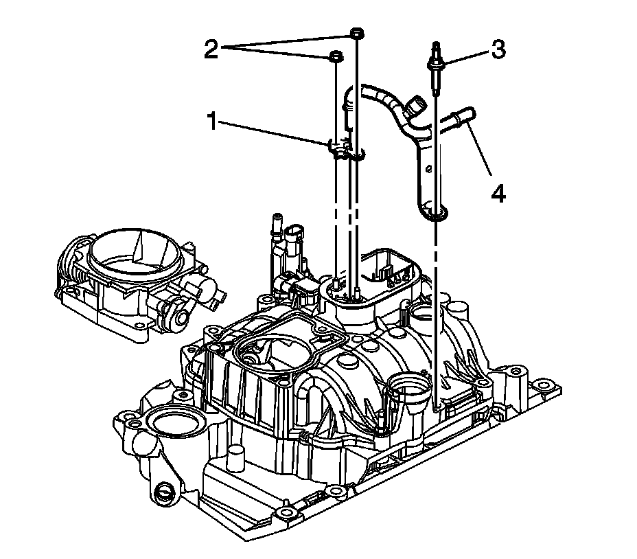 51. Apply threadlock GM P/N 12345382 (Canadian P/N 10953489) or equivalent, to the threads of the fuel feed pipe bracket stud (3).