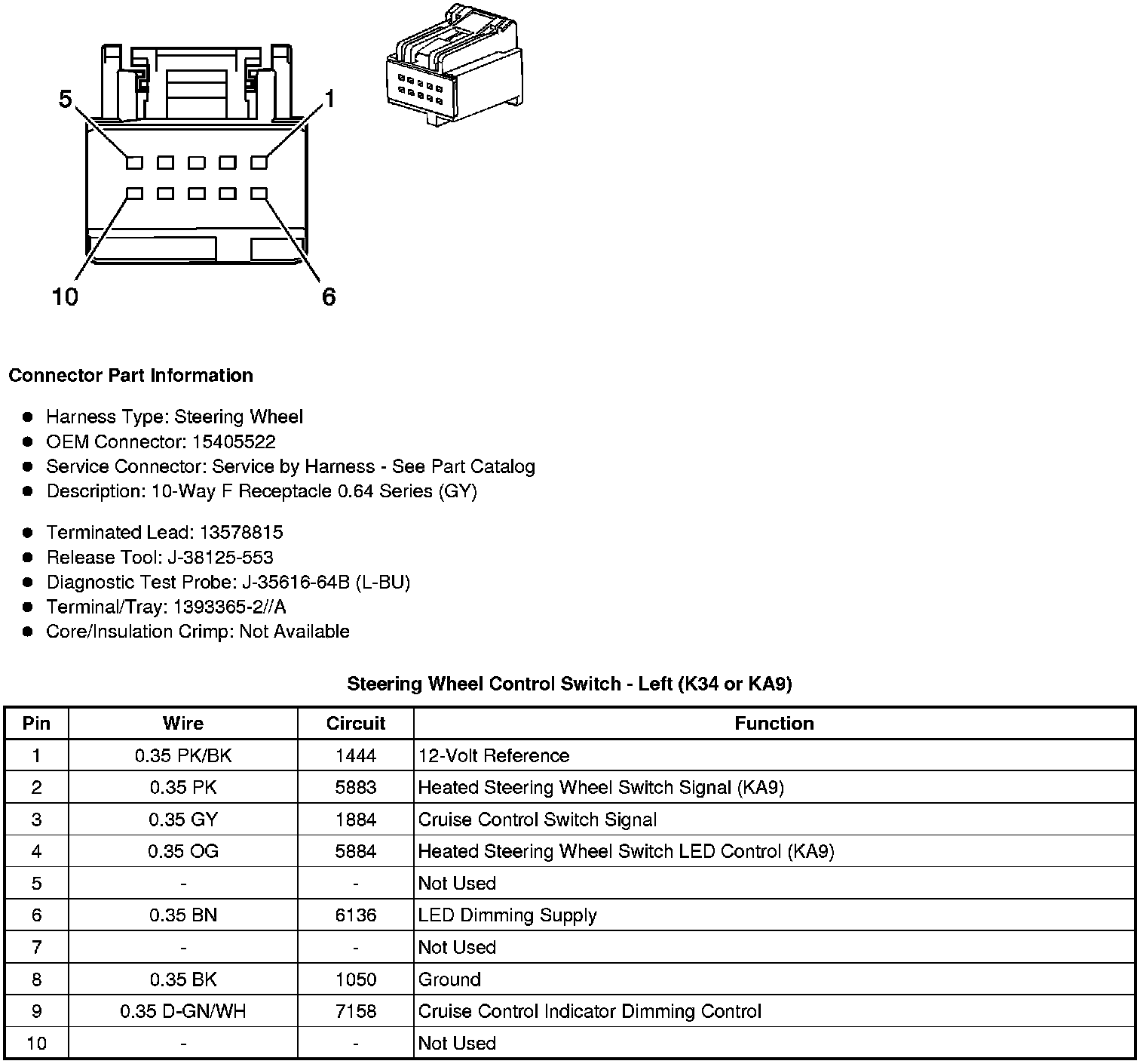 Steering Wheel Control Switch - Left (K34 or KA9)