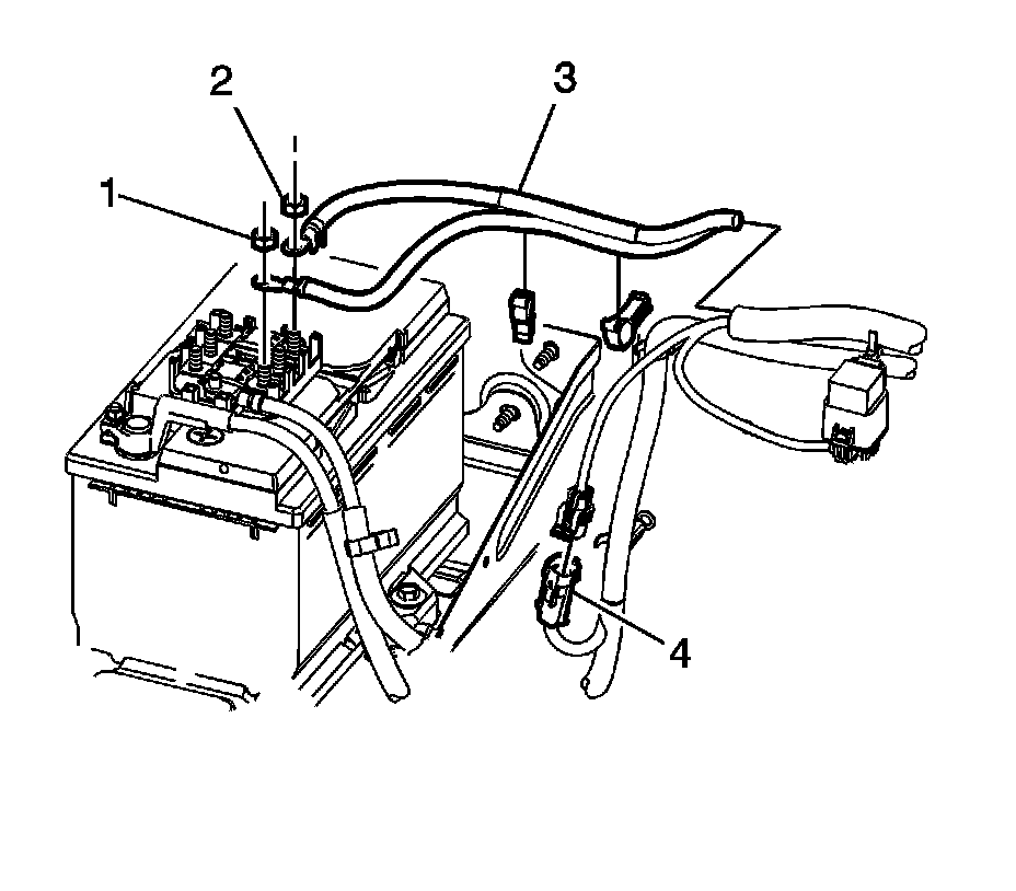 2. Connect the engine harness connector (4) to the battery positive cable.