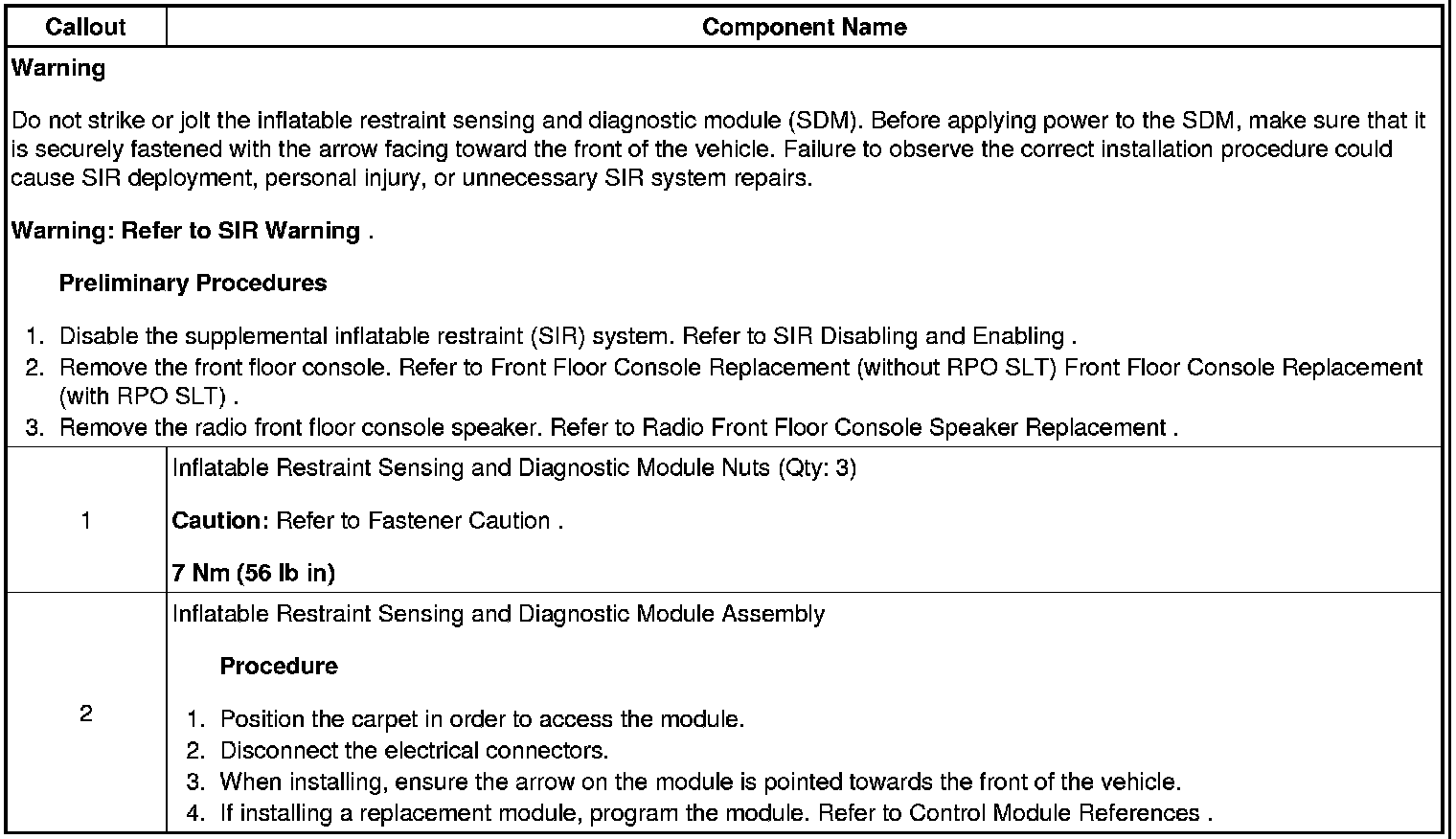 Inflatable Restraint Sensing and Diagnostic Module Replacement