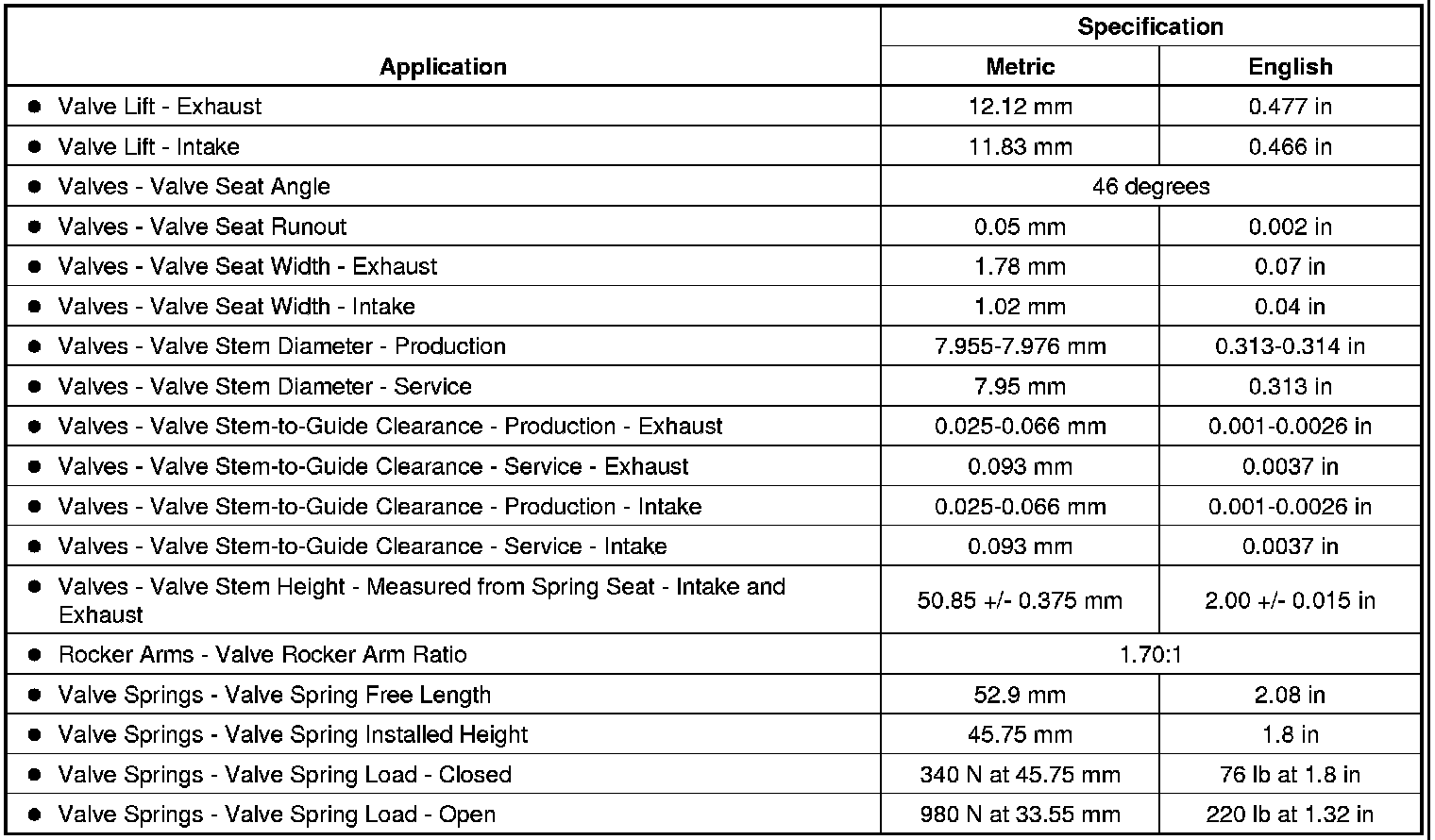 Engine Mechanical Specifications (RPO L96 VIN G)