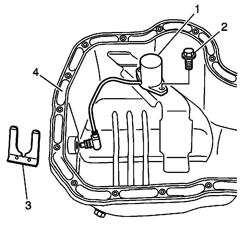 2. Remove the oil level sensor clip (3).