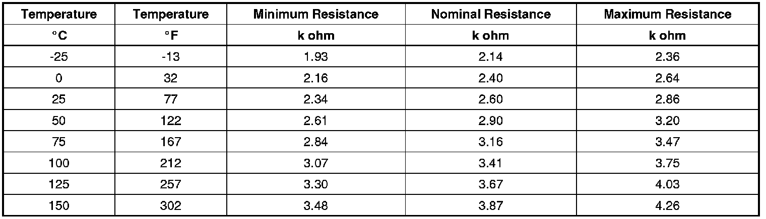 Temperature Versus Resistance (Speed Sensor)