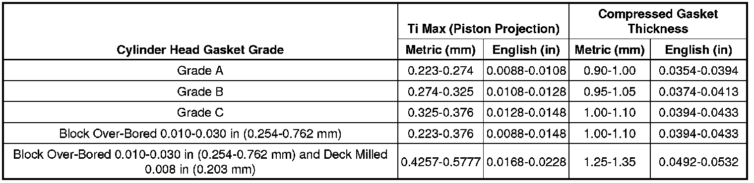 Cylinder Head Gasket Selection Specifications