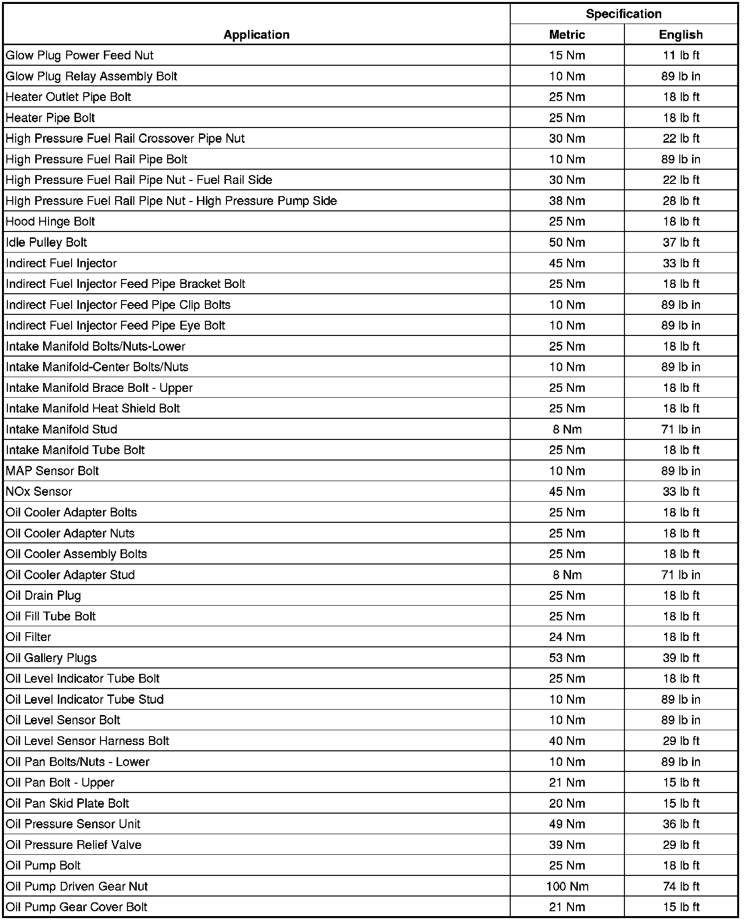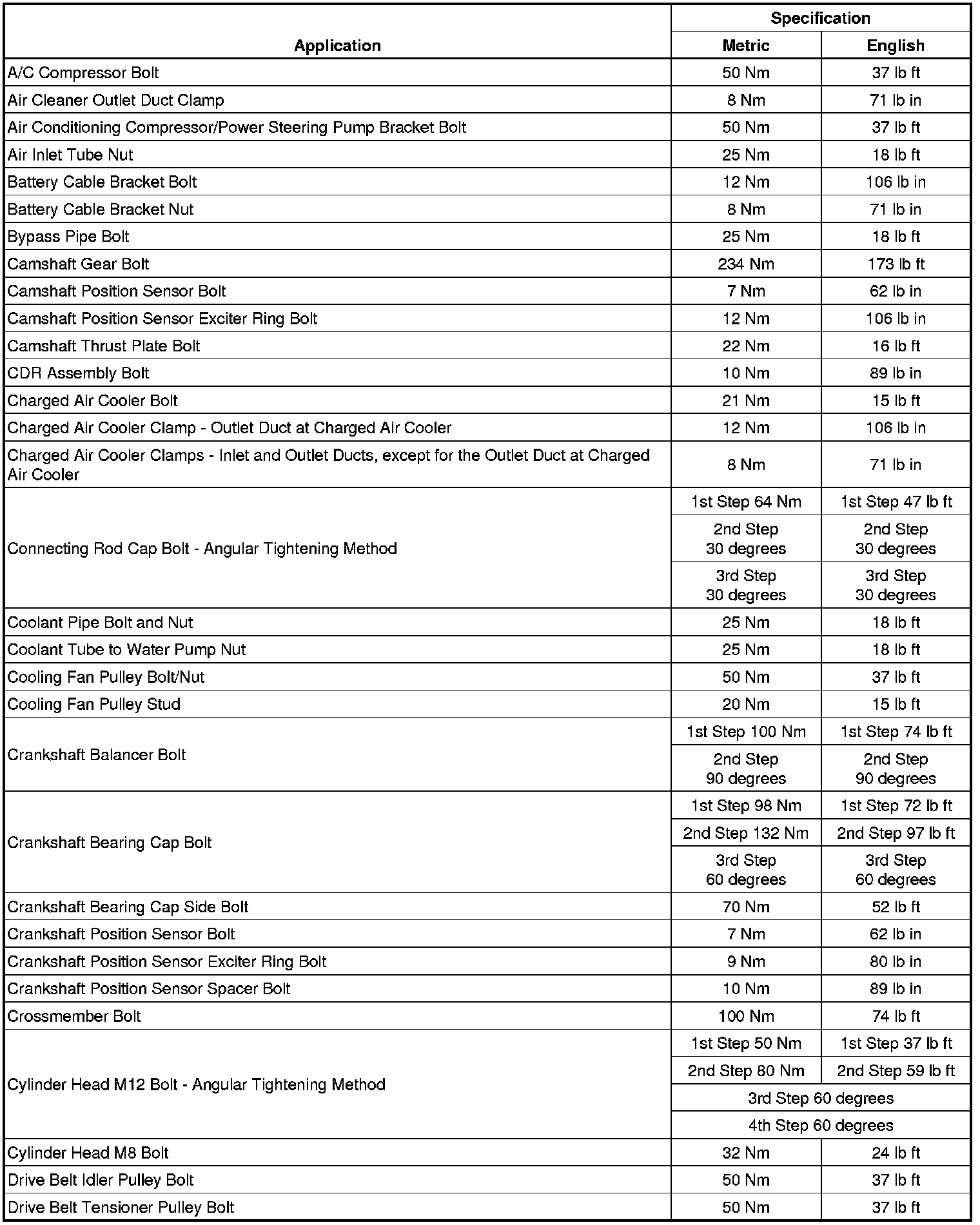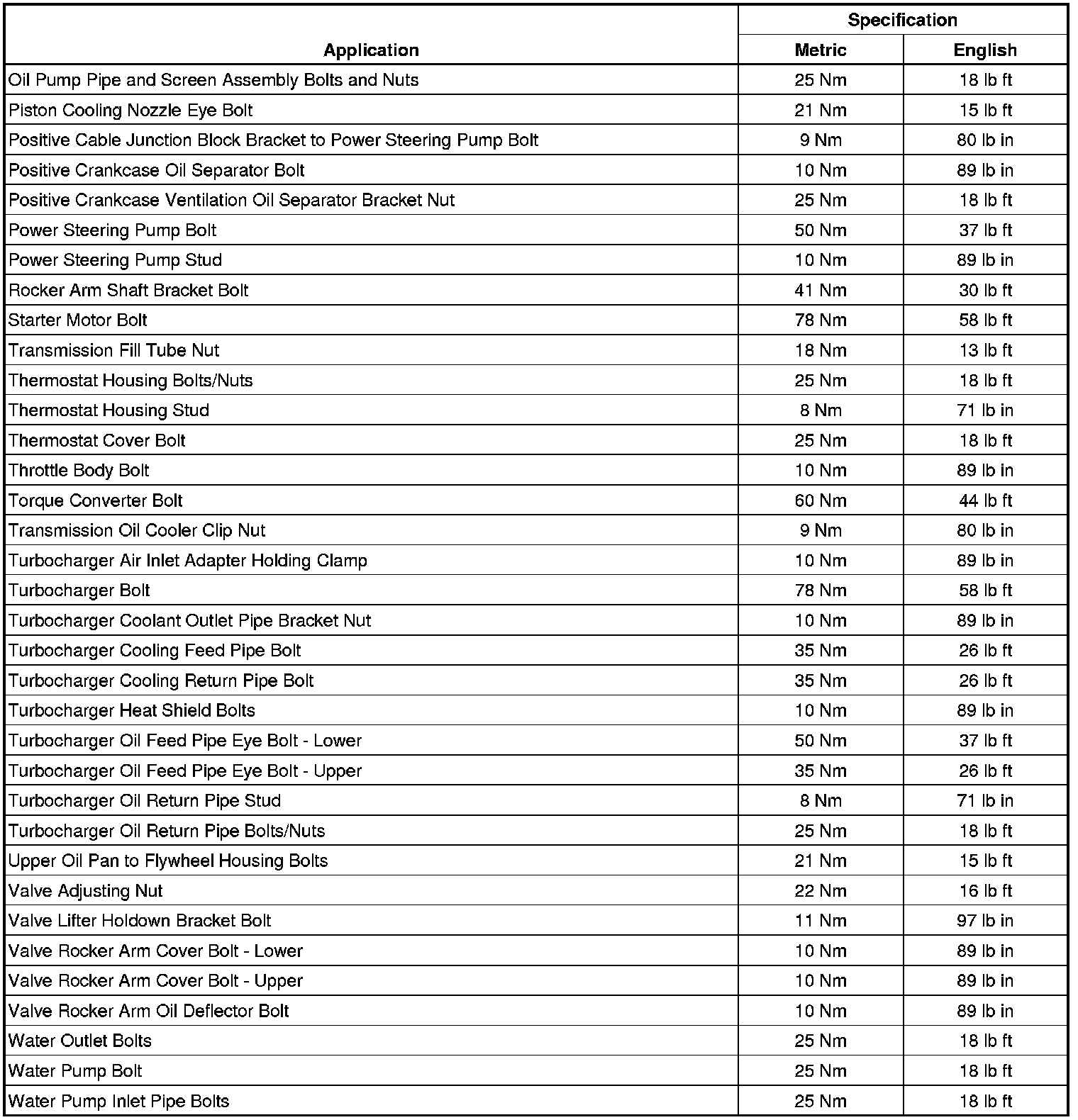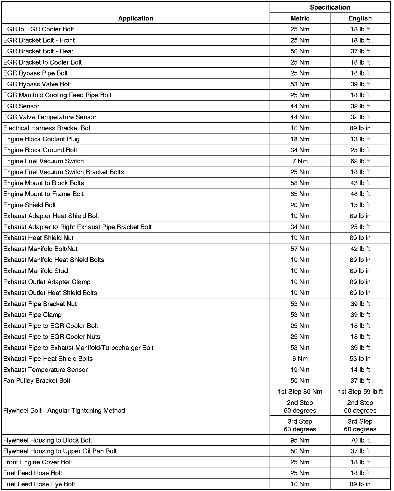 Fastener Tightening Specifications