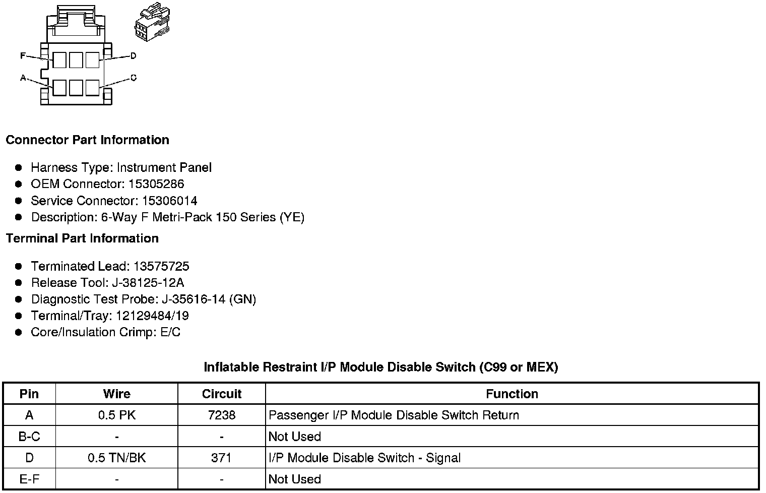 Inflatable Restraint I/P Module Disable Switch (C99 or MEX)