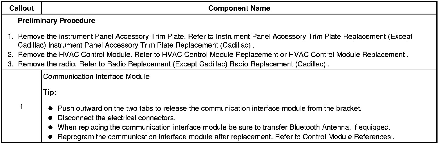 Communication Interface Module Replacement (Except Cadillac)