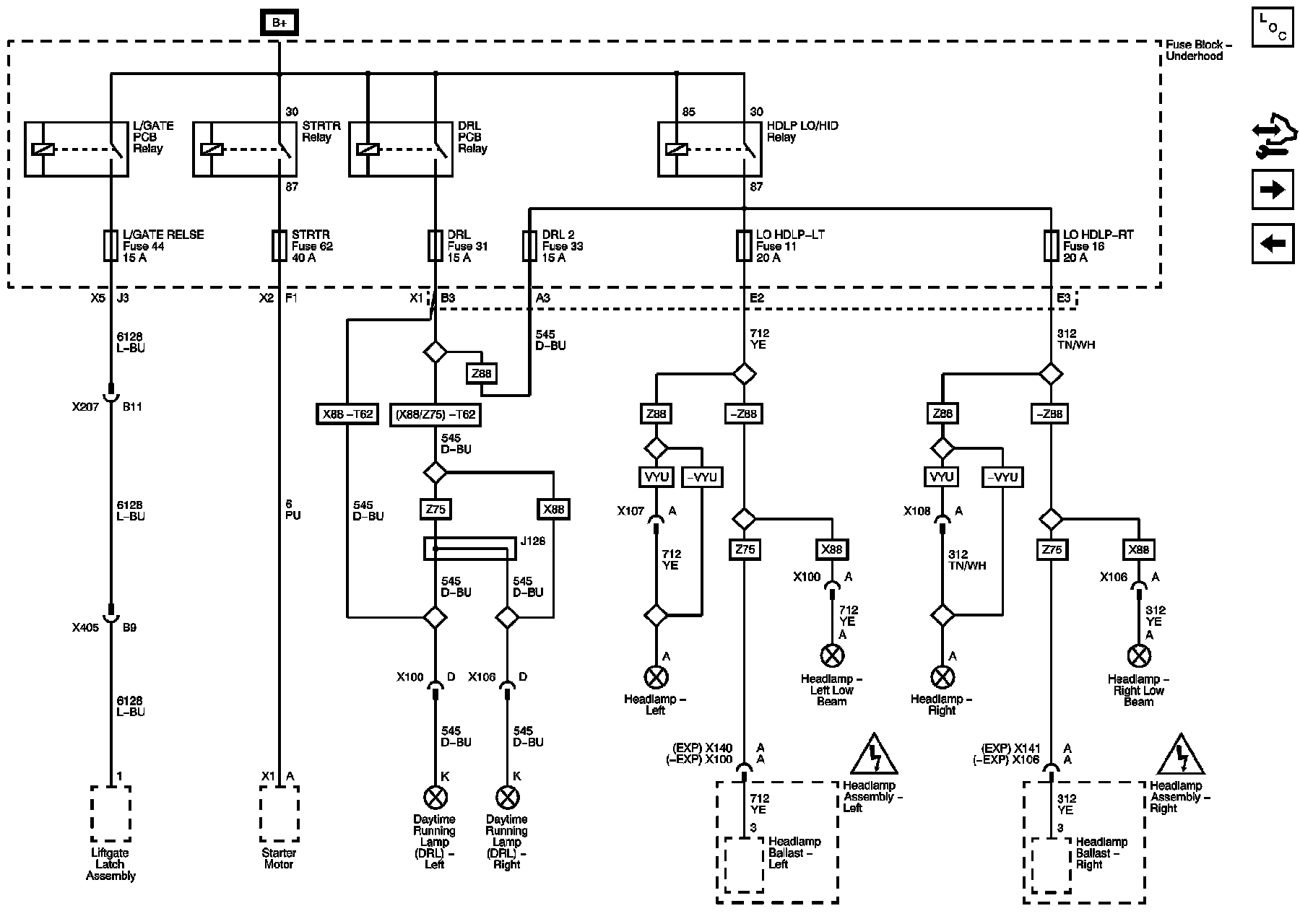 DRL, DRL 2, LO HDLP-LT, LO HDLP-RT, and STRTR Fuses