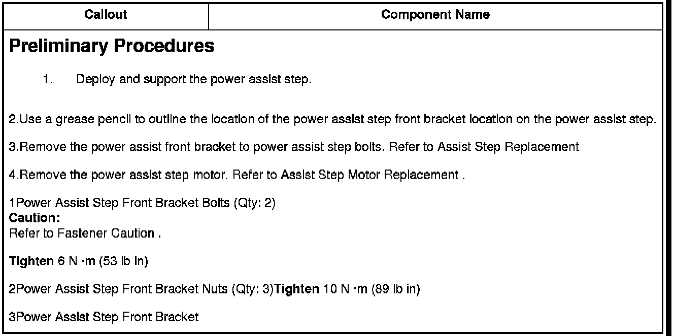 2Power Assist Step Front Bracket Nuts (Qty: 3)Tighten 10 N �m (89 lb in)