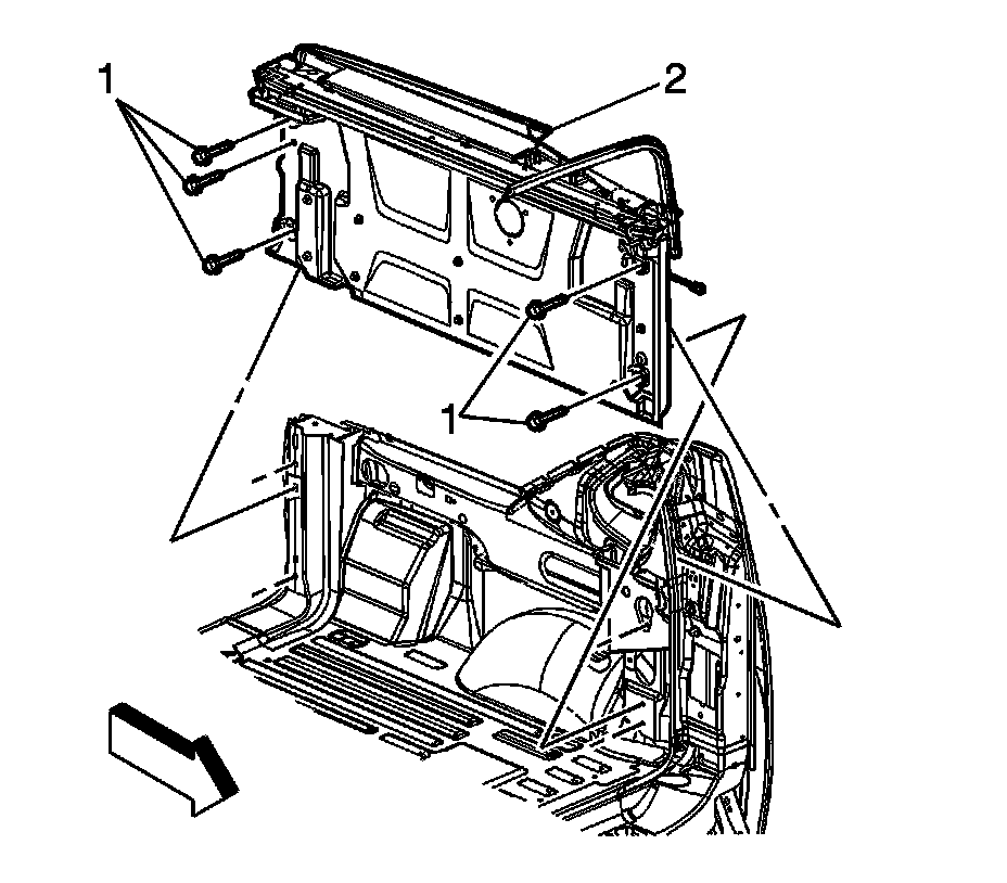 1. Remove the rear compartment cover assembly. Refer to Cargo Box Front Cover, Center Cover, and Rear Cover Replacement Cargo Box Front Cover, Center Cover, and Rear Cover Replacement.