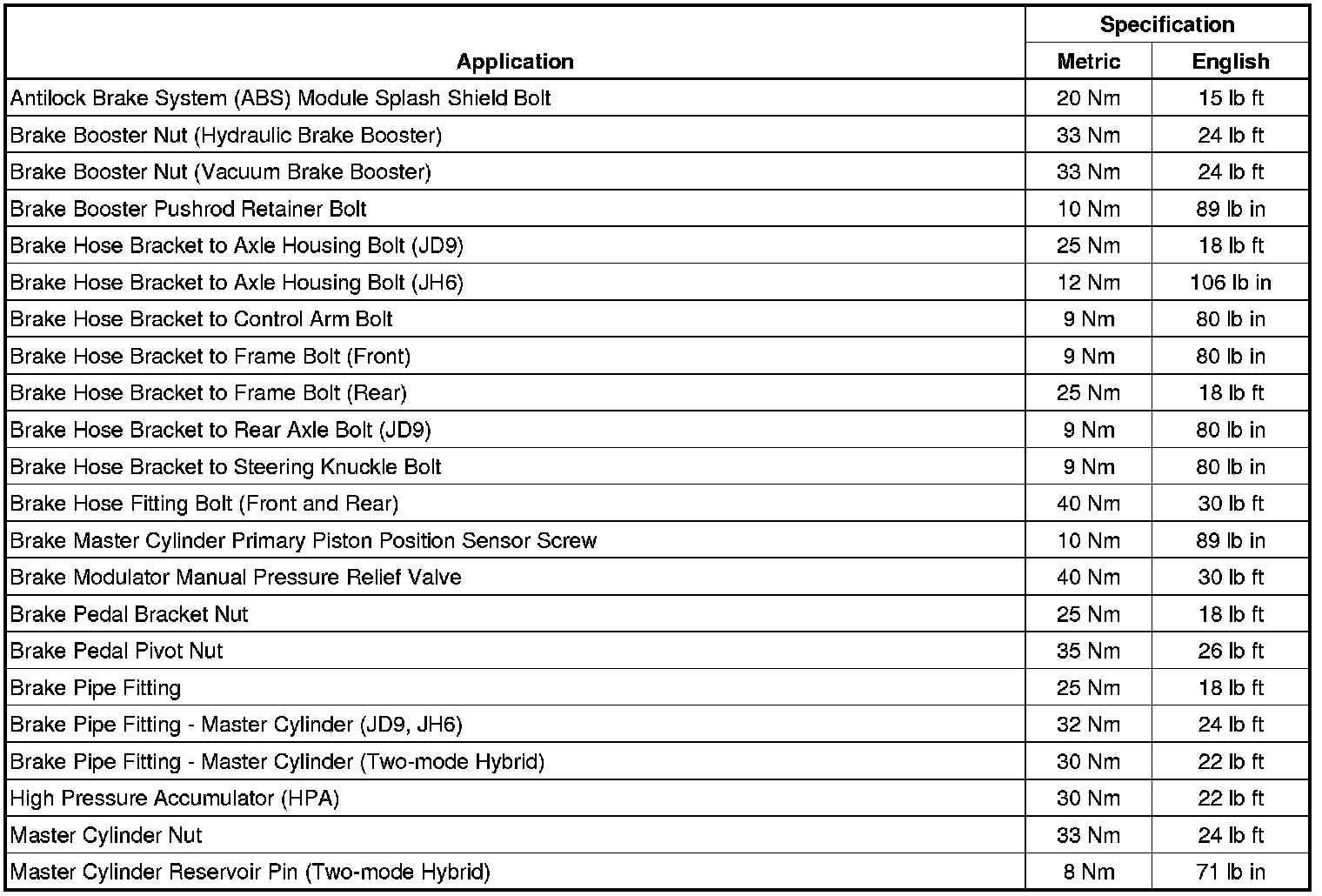 Fastener Tightening Specifications