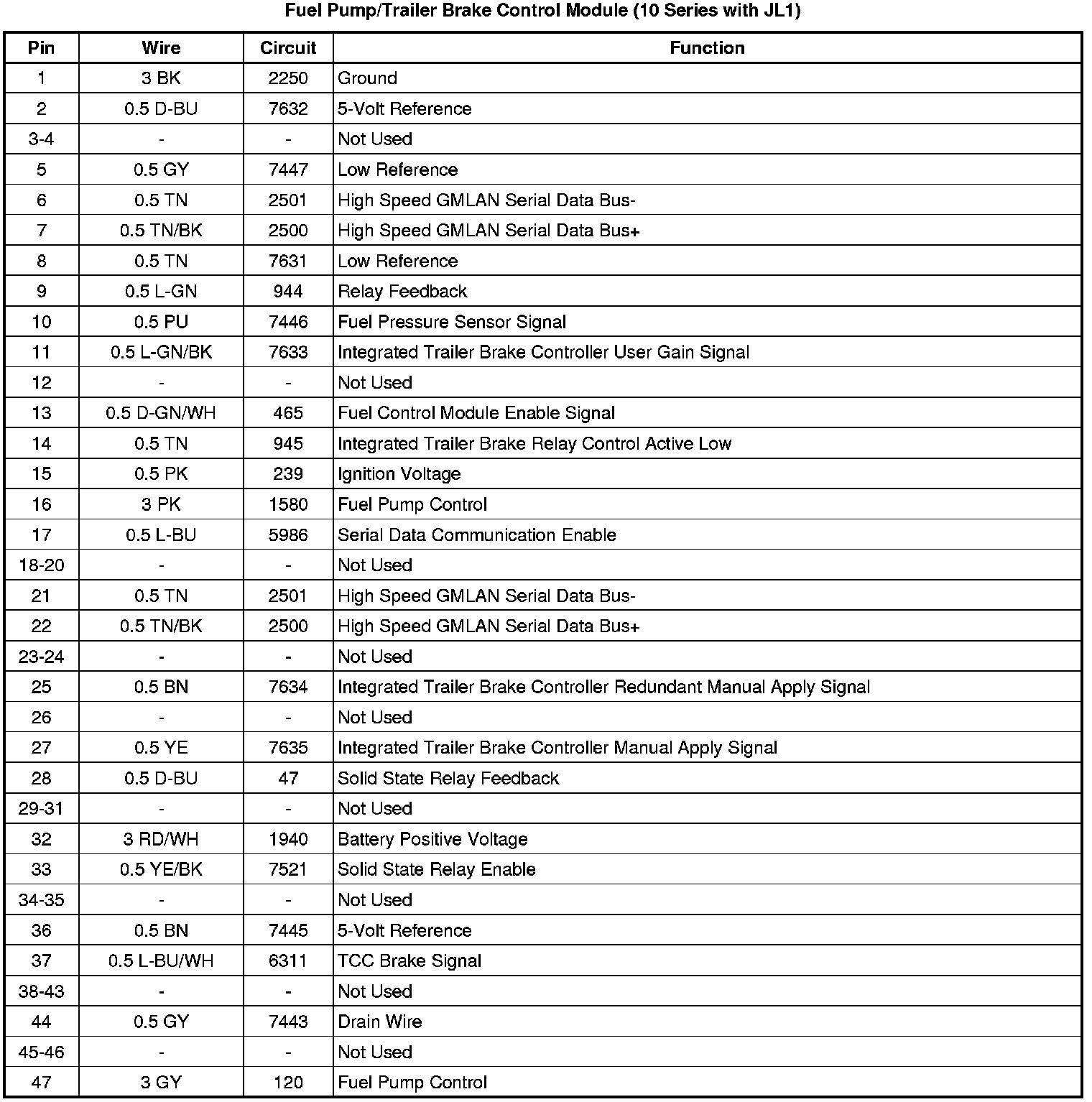 Fuel Pump/Trailer Brake Control Module (10 Series with JL1)