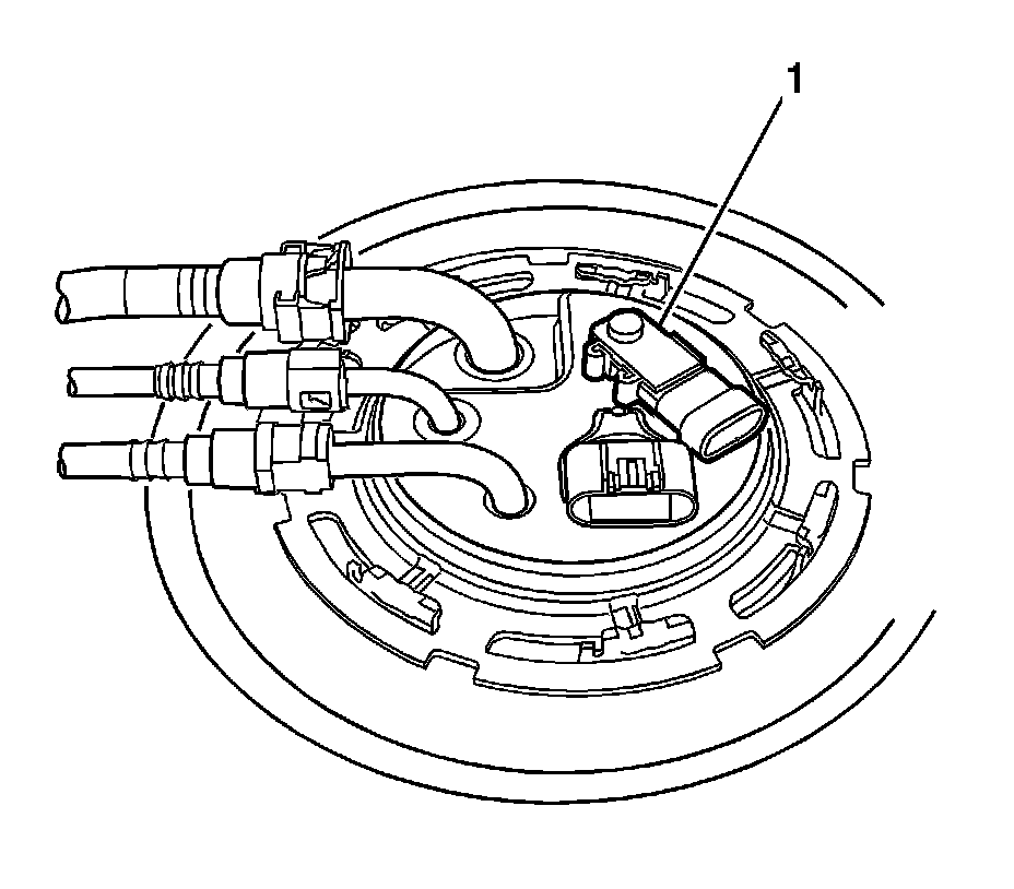 2. Using a slight rocking motion while pulling straight up, remove the fuel tank pressure sensor (1).