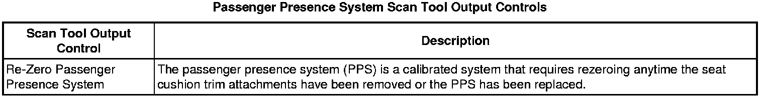 Inflatable Restraint Passenger Presence System Scan Tool Information