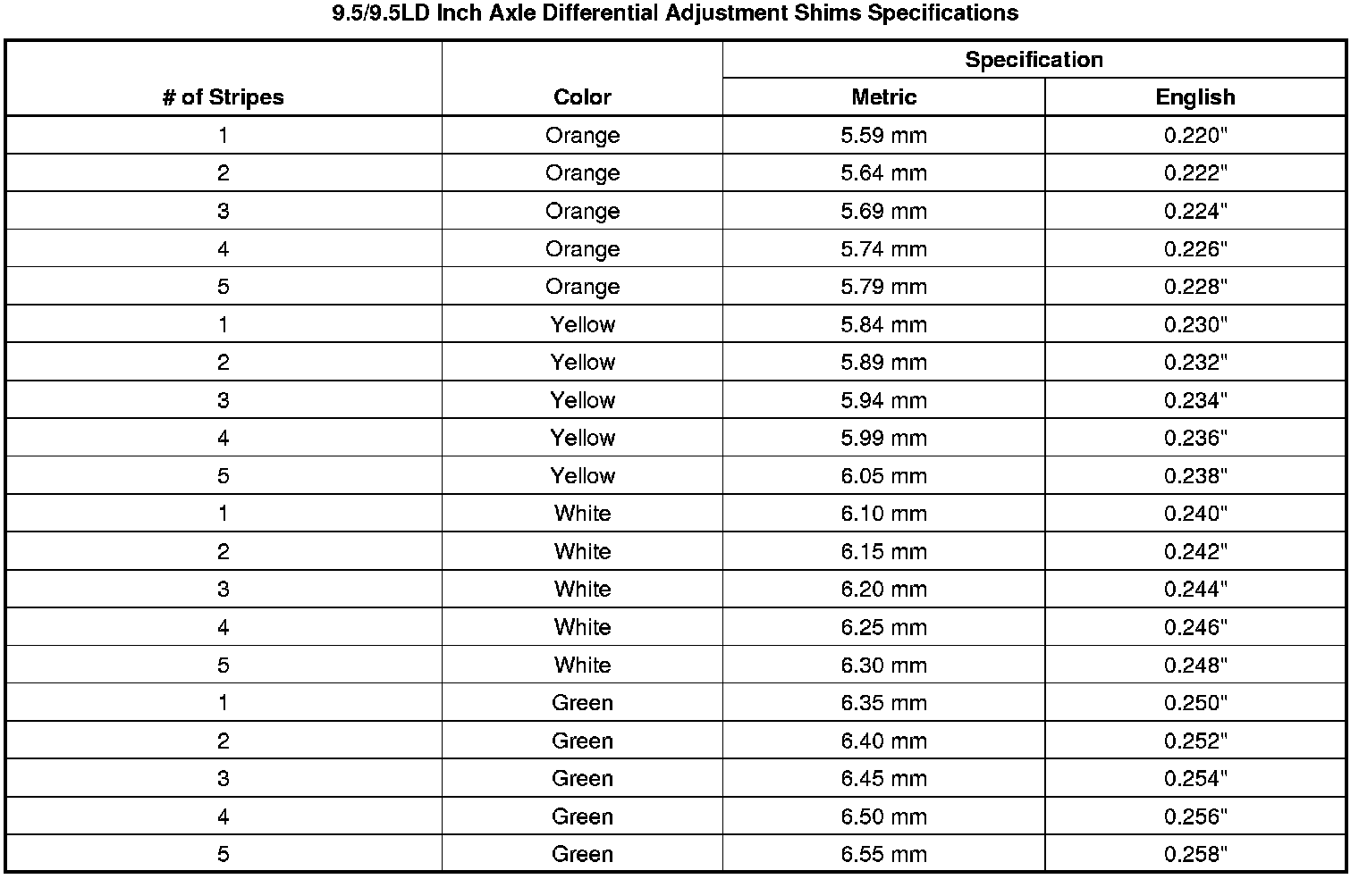 Differential Adjustment Shim Specifications