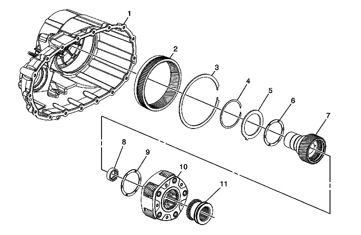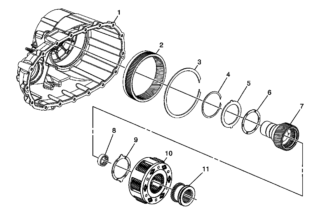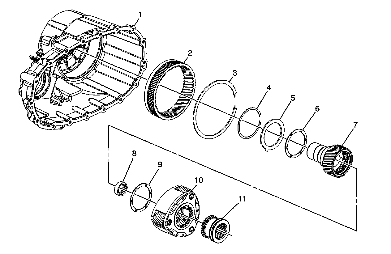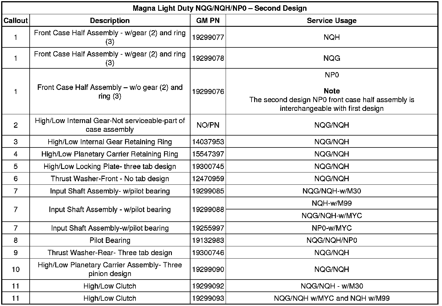 Interim 2012 model year for Magna light-duty and heavy-duty transfer case RPOs NQF / NQG / NQH, a second-design front case half assembly, planetary internal gear, gear retaining ring, locking plate, thrust washer-front, input shaft, pilot bearing, thrust washer-rear, high/low planetary carrier and high/low clutch were implemented into second-design assemblies.