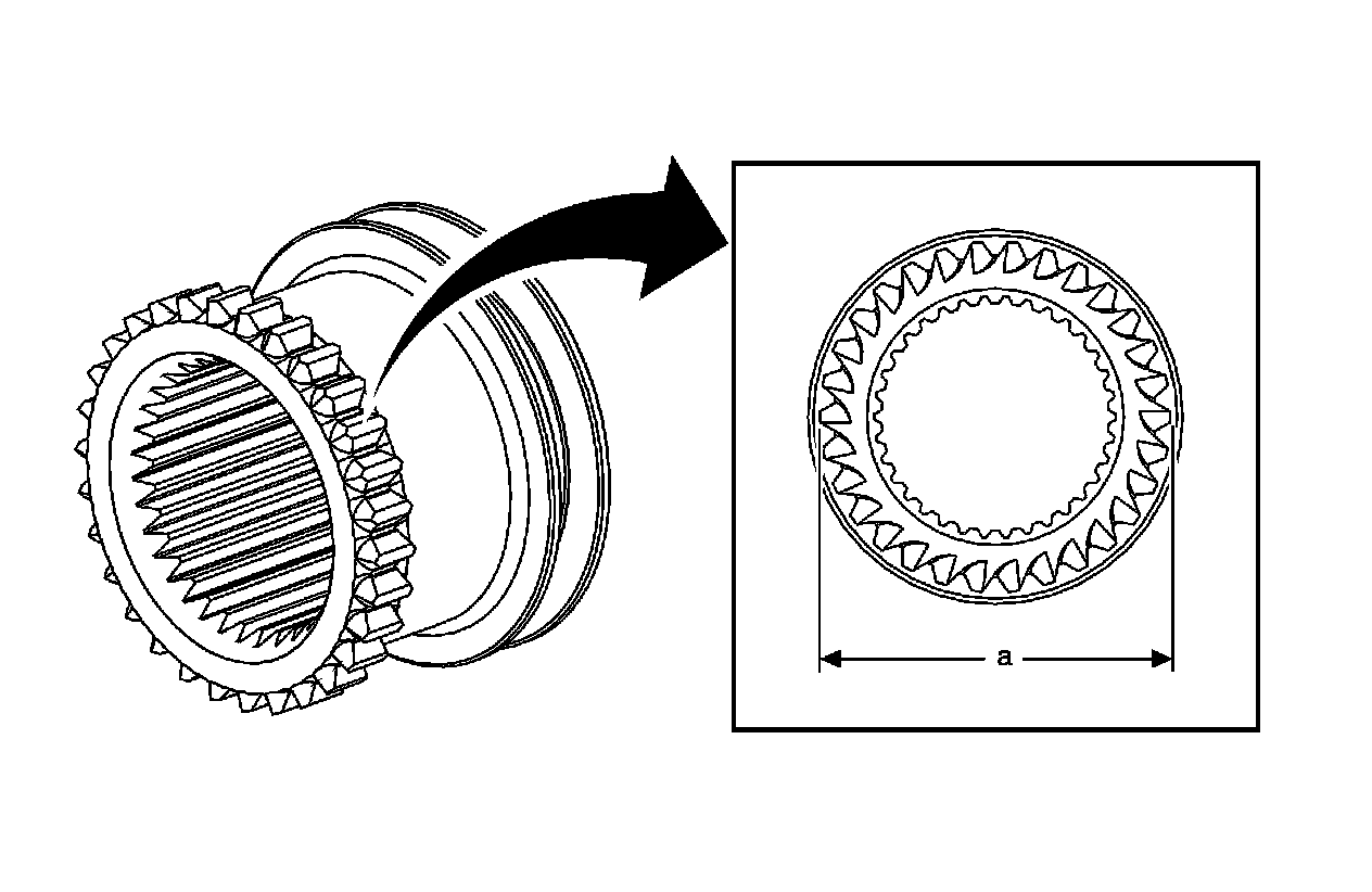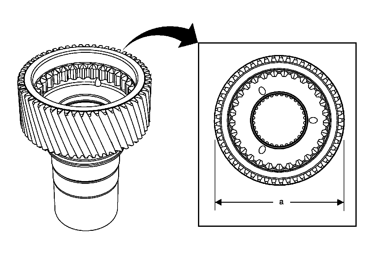The first design high/low clutch can be identified as having a 30 tooth design with a gear tooth outside diameter (a) of 65.50 mm (2.58 in).