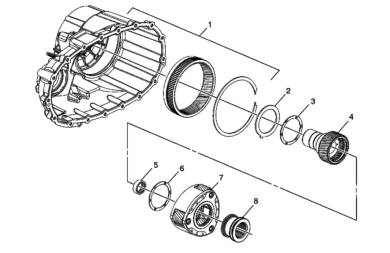 Interim Model Year Design Change - NQF/NQG/NQH Front Case Half Assembly, Input Shaft, Planetary Carrier High/Low Clutch