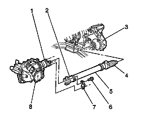 Caution: When removing the propeller shaft, do not attempt to remove the shaft by pounding on the yoke ears or using a tool between the yoke and the universal joint. If the propeller shaft is removed by using such means, the injection joints may fracture and lead to premature failure of the joint.